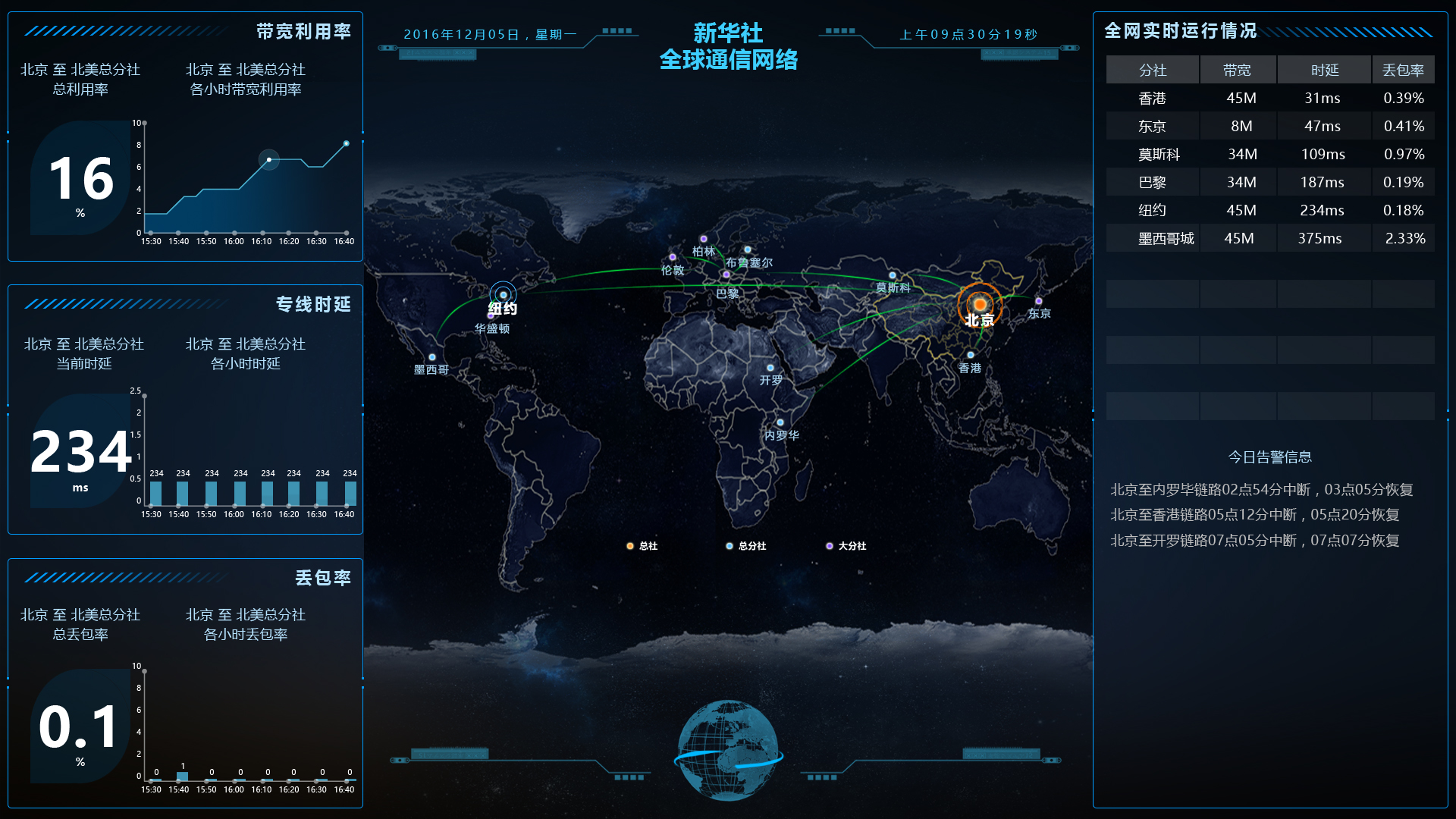 新華社全球通信網(wǎng)絡(luò)大屏幕界面設(shè)計應(yīng)用案例欣賞