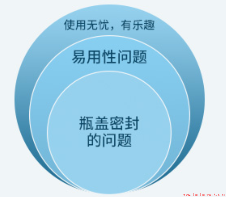第三層再用更抽象的語言去定義:挑戰(zhàn)是“使用無憂,有樂趣”。毎個(gè)定義不同,指向的解決方案就不同,最后一個(gè)或許是給了足夠的開放的空間,以產(chǎn)生出創(chuàng)造性解決方案的,例如可分離式容器。