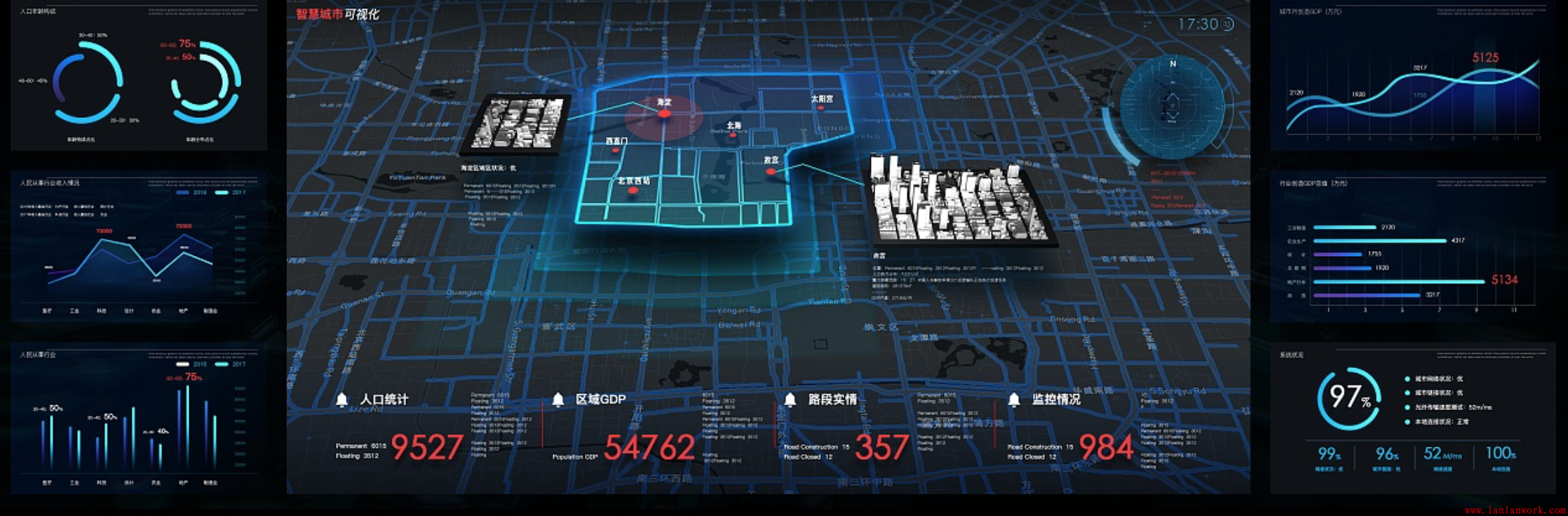 如今大數(shù)據產業(yè)正在超出我們的想象悄然發(fā)展,而隨著大數(shù)據時代的到來,越來越多的公司開始意識到數(shù)據資源的管理和運用。今天就給大家介紹一些可視化大屏的UI設計。