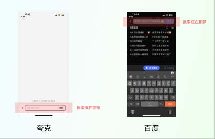 又比如說(shuō)手機(jī)瀏覽器一般都把搜索框放到屏幕頂部,而夸克瀏覽器卻把搜索框放到了下面。