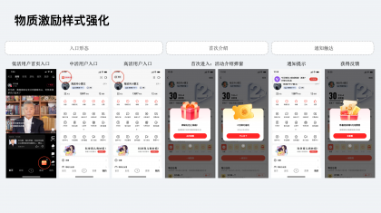 除了精神激勵(lì)外,針對(duì)于低活躍度與中活躍度用戶,進(jìn)行差異化的激勵(lì),用物質(zhì)金錢刺激用戶訪問(wèn)或完成任務(wù)。