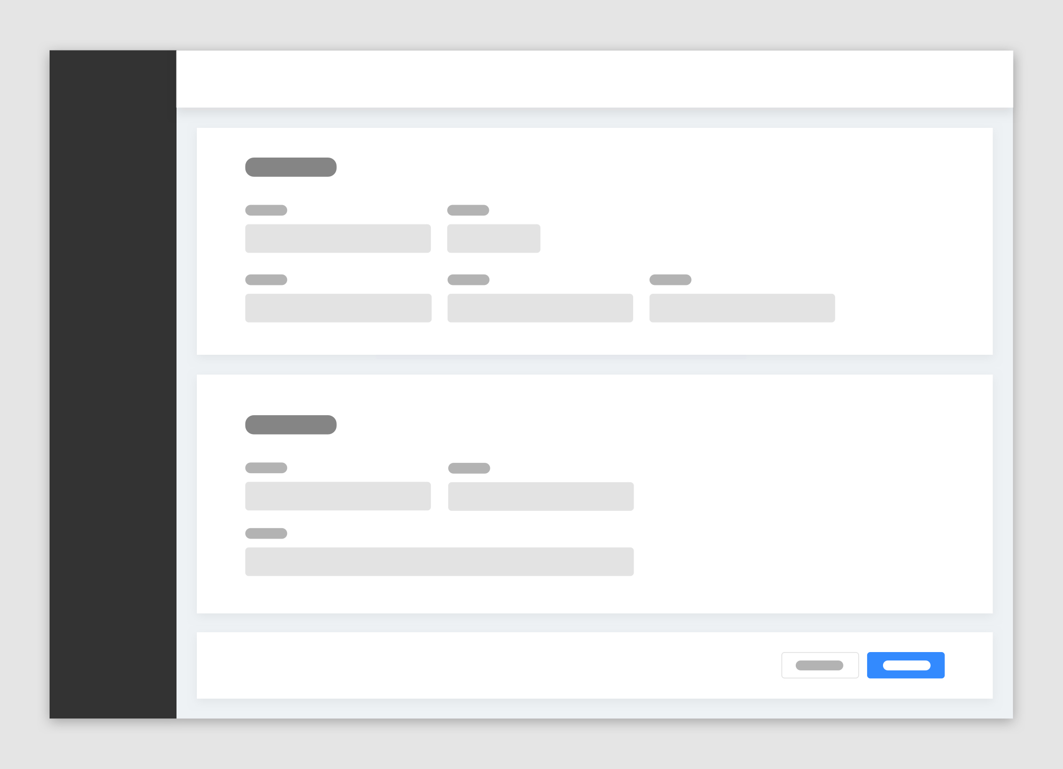 卡片分組布局一般用來處理高復(fù)雜類型表單。當(dāng)業(yè)務(wù)中希望頁面承載眾多表單字段時(shí),可將信息相關(guān)性弱的字段拆分為多個(gè)部分,并通過多個(gè)卡片分組承載不同類型字段,每個(gè)卡片都需有個(gè)卡片類別標(biāo)題。