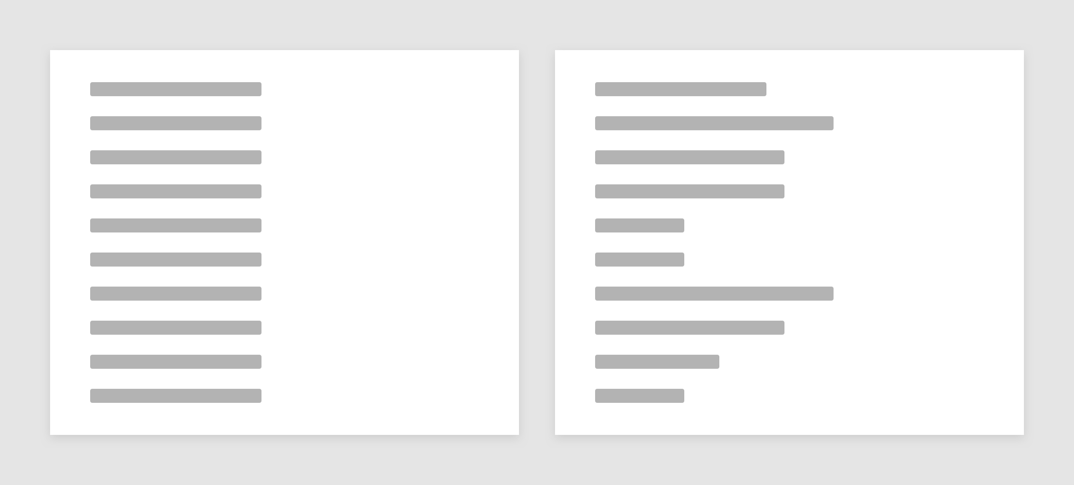 在實(shí)際業(yè)務(wù)中,設(shè)計(jì)師常常習(xí)慣把每個(gè)表單字段都設(shè)置成相同的寬度,在視覺效果上看感覺會(huì)比較統(tǒng)一,但是這種做法實(shí)際上體驗(yàn)欠佳。字段的寬度應(yīng)該向用戶暗示所需輸入內(nèi)容的長度從而減輕判斷負(fù)擔(dān)。在Ant Design 4.0 系列分享的文章《整齊劃一?不如錯(cuò)落有致》中分析到錯(cuò)落有致的排版表現(xiàn)似乎比整齊劃一的左圖更舒適,因?yàn)樵谝曈X上我們更容易將右圖的空間和內(nèi)容視為一個(gè)和諧的整體。但左圖過度的對(duì)齊導(dǎo)致暗示隱性的截?cái)?,我們慣性視覺會(huì)產(chǎn)生表單字段右側(cè)空間缺了一大塊的錯(cuò)覺。