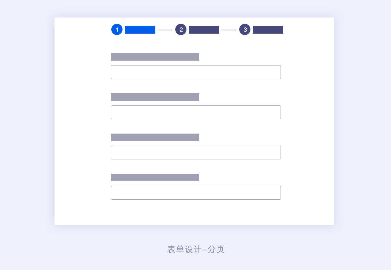 分頁表單設(shè)計一般會針對具有步驟前后順序關(guān)系的表單。也就是指需要先完成上一步表單信息才能進入到下一步的表單頁面,形成一個完整的閉環(huán)流程才能使表單信息提交成功。