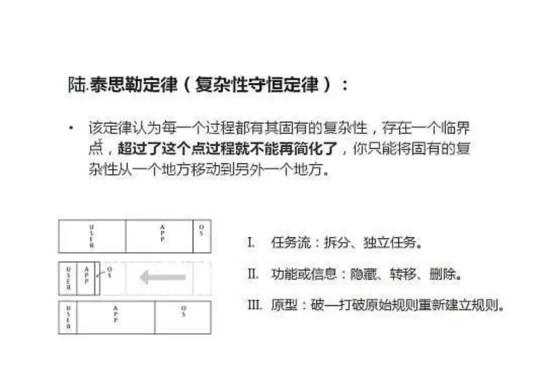 11.泰斯勒定律(Tesler's Law),也被稱(chēng)為“保持簡(jiǎn)單定律”(Keep It Simple, Stupid,KISS),是交互設(shè)計(jì)中的一個(gè)基礎(chǔ)定律。該定律由計(jì)算機(jī)科學(xué)家Larry Tesler提出,旨在指導(dǎo)設(shè)計(jì)人員在創(chuàng)建用戶(hù)界面時(shí)遵循簡(jiǎn)單和直觀(guān)的原則。