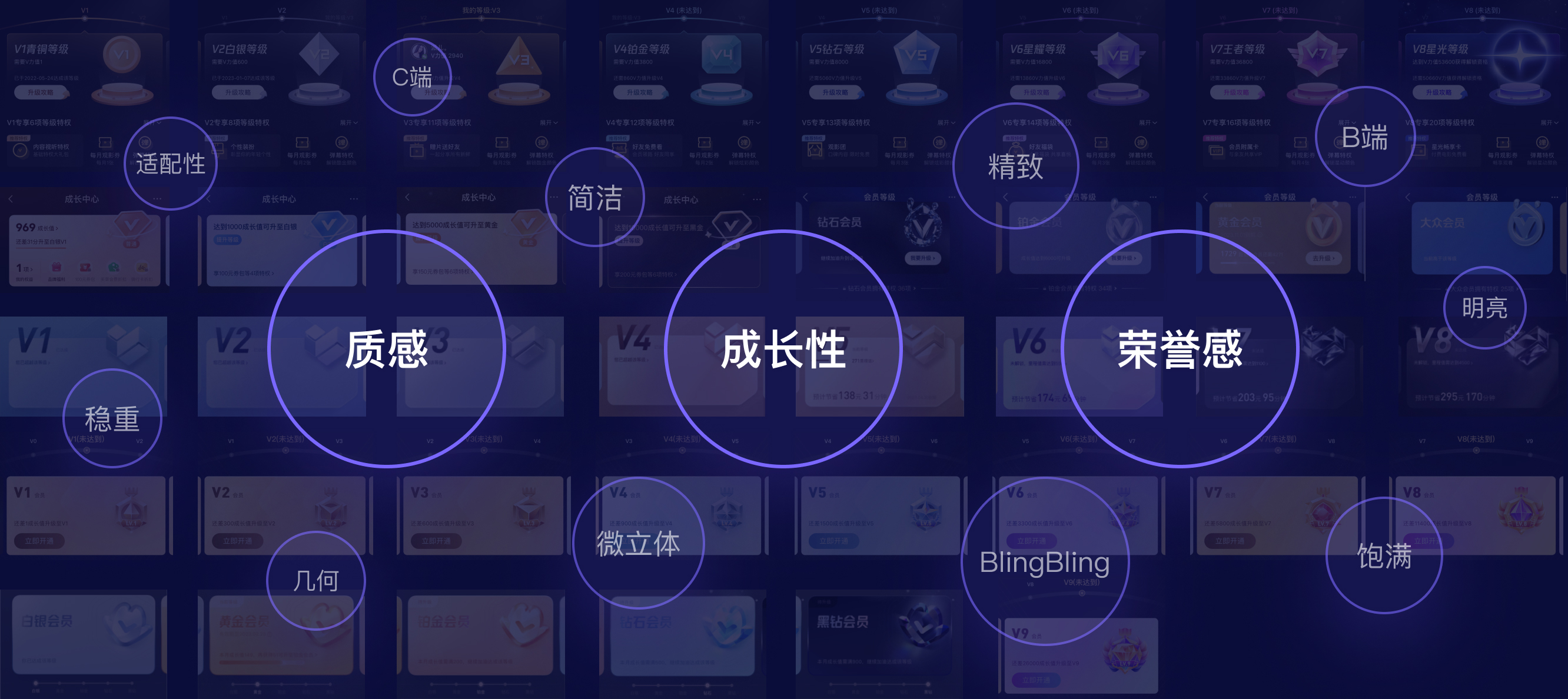 需求分析:開(kāi)始設(shè)計(jì)之前,我們首先做了背景研究,了解徽標(biāo)的設(shè)計(jì)需求、目標(biāo)受眾和使用場(chǎng)景,為設(shè)計(jì)提供更準(zhǔn)確的方向。在本項(xiàng)目中,商家等級(jí)覆蓋百度商業(yè)場(chǎng)景所有B端業(yè)務(wù),所以設(shè)計(jì)風(fēng)格要考慮整體質(zhì)感和適配性;另外商家等級(jí)是一個(gè)同時(shí)面向商家和用戶兩者的體系,所以設(shè)計(jì)師需要考量雙端展現(xiàn)的異同點(diǎn);最后,商家等級(jí)特有屬性成長(zhǎng)、榮譽(yù)需要在徽標(biāo)中有所體現(xiàn)。