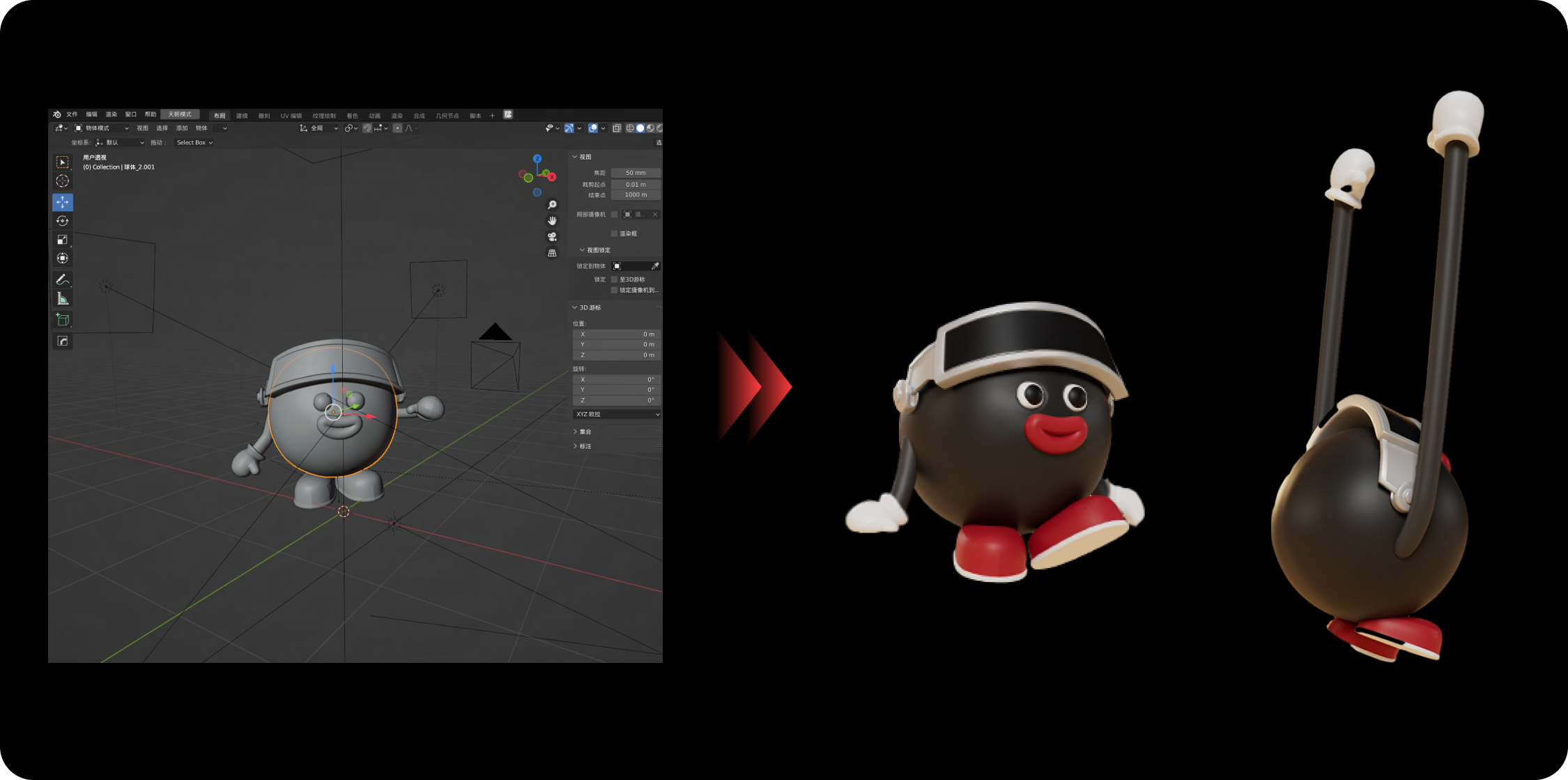 只需把圖丟上去就能迅速摳出畫面主體,非常方便。最后我們要將IP形象霸哥融入進(jìn)畫面,因?yàn)镮P形象是特定的,所以在這我們使用三維軟件去進(jìn)行IP形象動(dòng)作的調(diào)整。