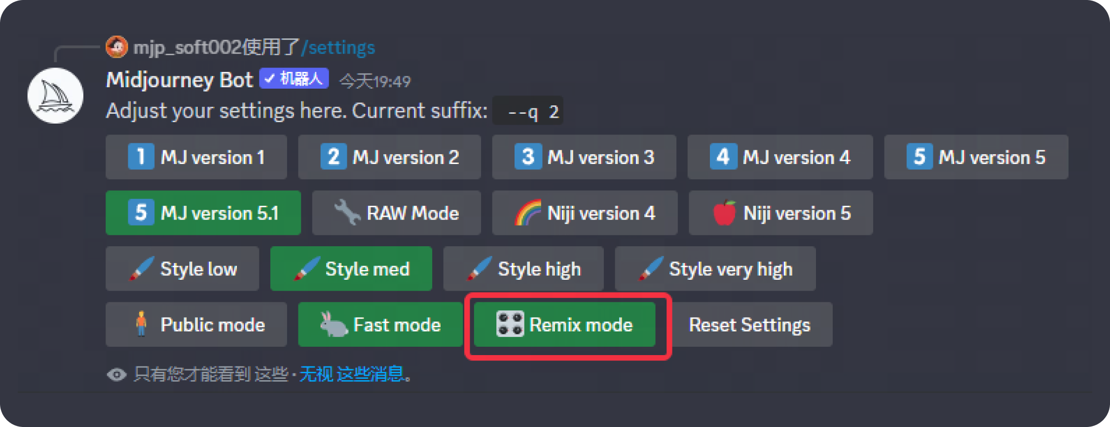 確定好修改方向后,我們回到Midjourney中,設(shè)置好混音模式Remix mode,修改關(guān)鍵詞對(duì)畫面中元素進(jìn)行替換。