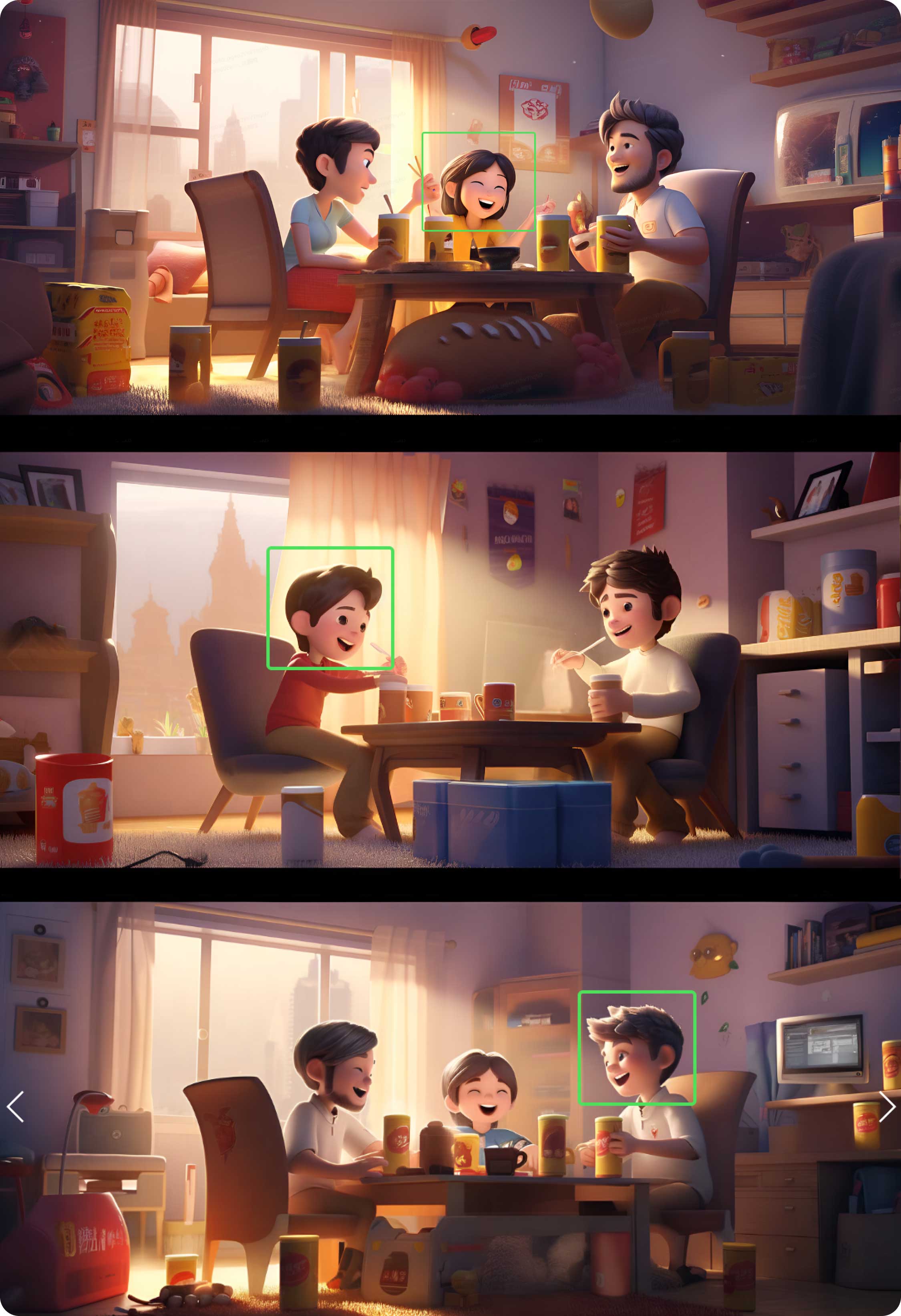 通過(guò)篩選之后,最終我們得到下面這幾張圖,其中這幾個(gè)人物形象還是比較貼近亞洲面孔的,且比較符合需求方的要求。因此我們將這幾張圖通過(guò)PS進(jìn)行人物頭部的替換。