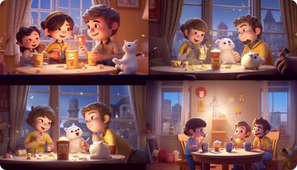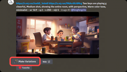 在前期,我們對(duì)構(gòu)想的畫面進(jìn)行關(guān)鍵詞的描述:“可愛帥氣的男女孩子們一起玩手機(jī),開心地微笑著,舉起手歡呼,溫暖的房間,大型落地窗。”將關(guān)鍵詞翻譯后放入Midjourney中進(jìn)行煉圖,最終篩選了幾張氛圍還不錯(cuò)的進(jìn)行下一步操作。