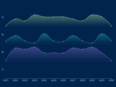 折線圖適用于展示數(shù)據(jù)的趨勢變化。折線圖可以顯示一段時(shí)間內(nèi)數(shù)據(jù)的變化趨勢,例如溫度、銷售額、人口變化等。折線圖可以清晰地顯示出數(shù)據(jù)的峰值和谷值,以及趨勢的變化速度。