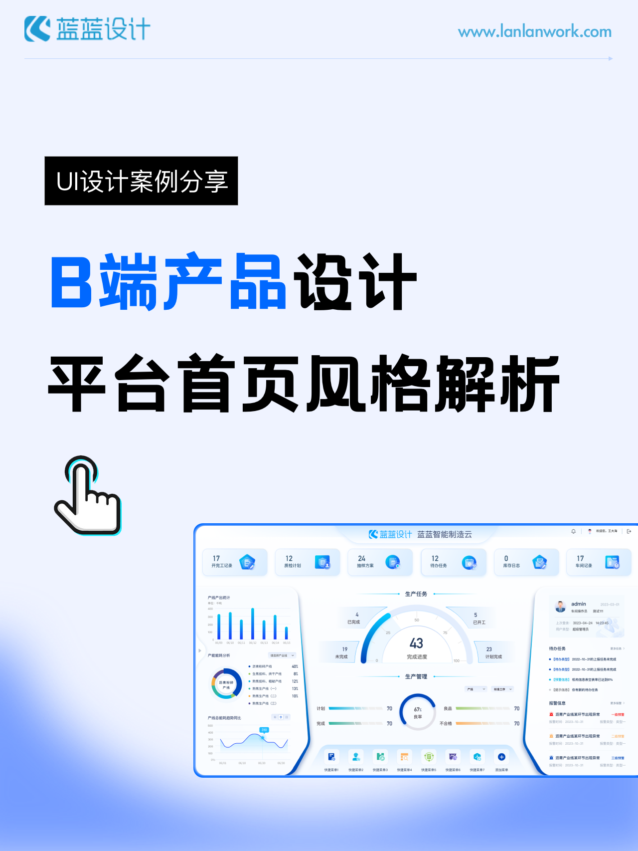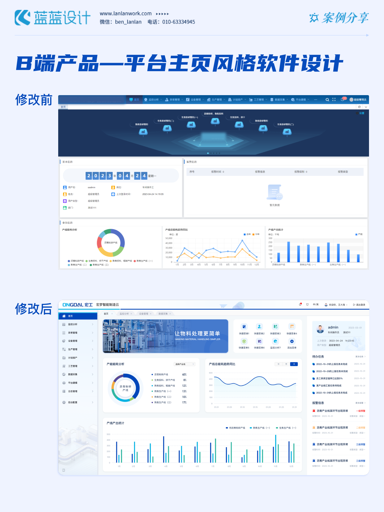 hello,大家好!今天藍(lán)藍(lán)要介紹的是我們近期的作品,兩種不同風(fēng)格的B端產(chǎn)品平臺(tái)首頁,一起來欣賞吧!