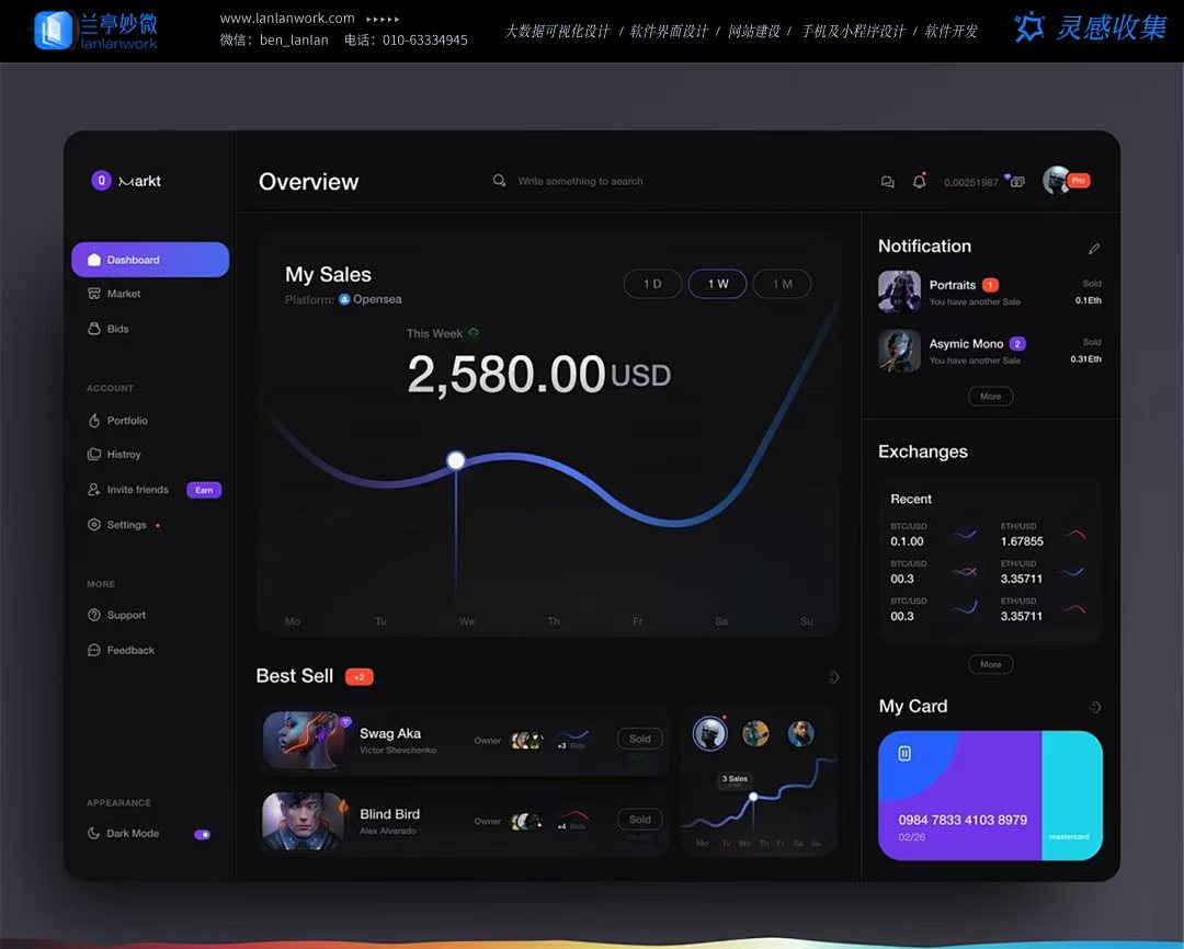 以下是一些黑色卡片式界面設計的優(yōu)秀案例: