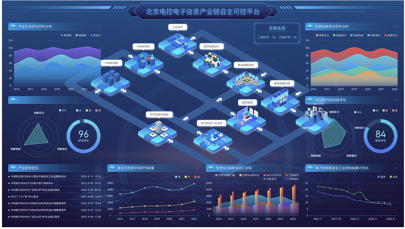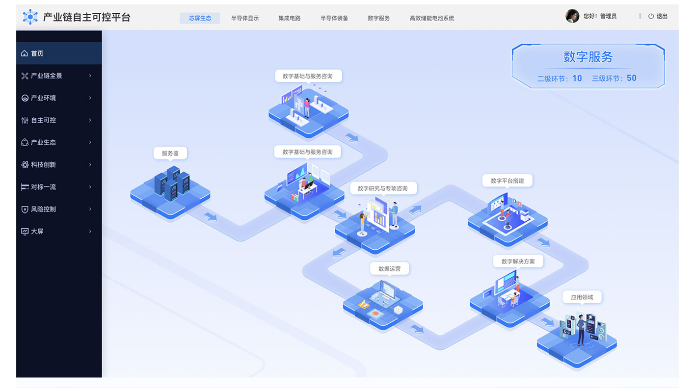 項(xiàng)目背景:產(chǎn)業(yè)鏈自主可控平臺(tái)是指一個(gè)集成了多方參與者的平臺(tái),旨在實(shí)現(xiàn)對(duì)整個(gè)產(chǎn)業(yè)鏈的自主控制和管理。該平臺(tái)通過(guò)整合各個(gè)環(huán)節(jié)的資源、技術(shù)和信息,以實(shí)現(xiàn)產(chǎn)業(yè)鏈的協(xié)同發(fā)展和自主創(chuàng)新。過(guò)建立產(chǎn)業(yè)鏈自主可控平臺(tái),可以促進(jìn)各參與者間的協(xié)同合作,加強(qiáng)產(chǎn)業(yè)鏈的自主控制能力,提高整體競(jìng)爭(zhēng)力和創(chuàng)新能力,實(shí)現(xiàn)更加可持續(xù)和穩(wěn)定的發(fā)展。蘭亭妙微團(tuán)隊(duì)首先設(shè)計(jì)了一套高度定制化的動(dòng)態(tài)數(shù)據(jù)可視化儀表板。
