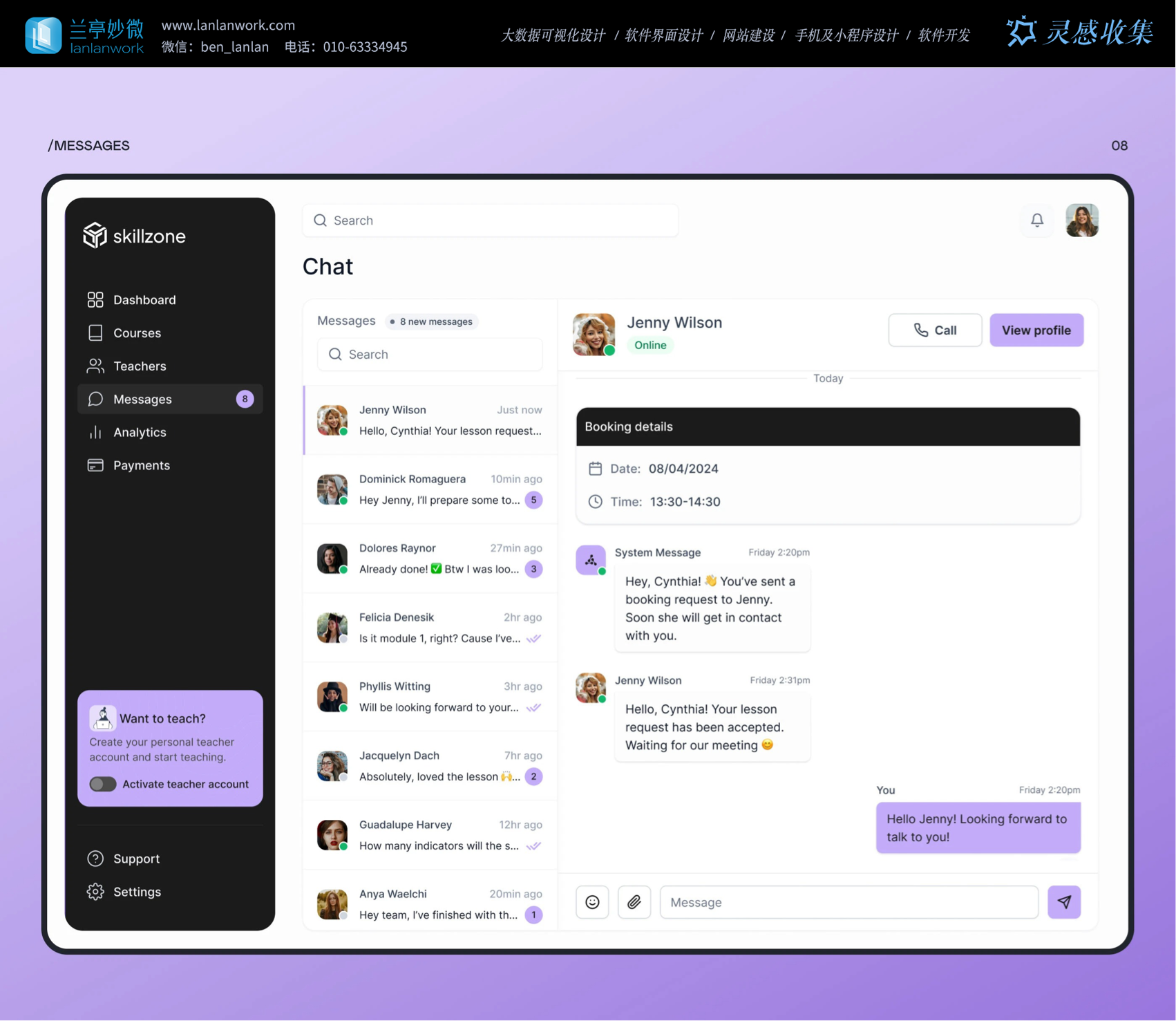 足多樣教學(xué)需求。消息模塊里,聊天界面實(shí)時(shí)顯示在線(xiàn)狀態(tài)、課程預(yù)約詳情,師生溝通方便又順暢。這些貼心設(shè)