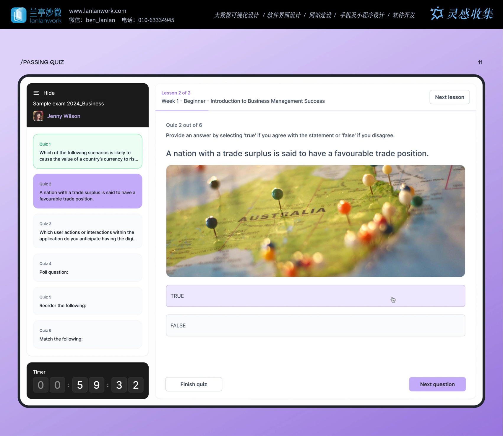 交互設(shè)計(jì)處處為用戶(hù)考慮。就說(shuō)測(cè)驗(yàn)功能,學(xué)生答題頁(yè)有 "Retakeequiz (重新測(cè)驗(yàn))""Next lesson (下一課)"