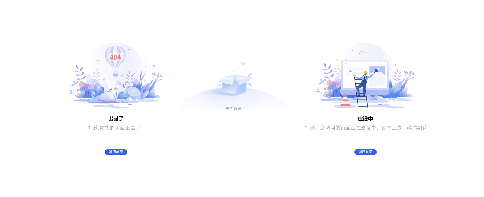 • 狀態(tài)提示圖標:緩解用戶焦慮。如 “404 頁面” 的 “迷路小圖標”、“暫無數(shù)據(jù)” 的 “空文件夾圖標”,讓用戶理解當前狀態(tài);