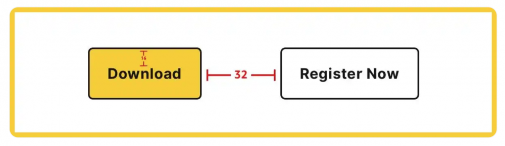 在上圖的案例中,設(shè)計(jì)師盡可能使用 8 的倍數(shù)來(lái)定義所有的設(shè)計(jì)參數(shù),包括按鈕的長(zhǎng)寬尺寸、按鈕的內(nèi)邊距(Download距離按鈕頂部的內(nèi)邊距)、按鈕和按鈕的間距等。8 點(diǎn)網(wǎng)格可以進(jìn)一步降低設(shè)計(jì)師的決策難度,提升設(shè)計(jì)效率。