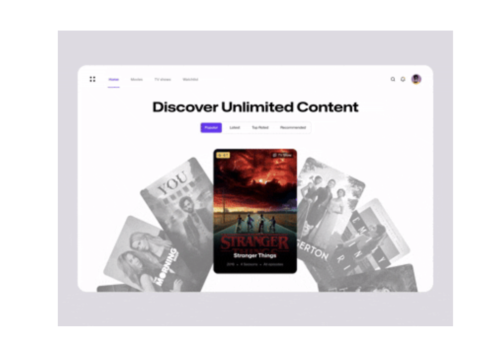 • 定義:借鑒現(xiàn)實(shí)中撲克牌的翻頁(yè)、堆疊邏輯,內(nèi)容卡片以層疊或并列形式呈現(xiàn),切換時(shí)帶有滑動(dòng)、翻轉(zhuǎn)等物理動(dòng)效,讓用戶直觀感知 “內(nèi)容切換” 的動(dòng)作。
