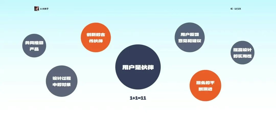 通過(guò)與用戶建立持續(xù)的合作關(guān)系,「1+1=11」的思想強(qiáng)調(diào)了合作的力量。用戶作為伙伴能夠?yàn)樵O(shè)計(jì)團(tuán)隊(duì)提供獨(dú)特的視角和實(shí)際的使用體驗(yàn),而設(shè)計(jì)團(tuán)隊(duì)則能夠通過(guò)專業(yè)知識(shí)和創(chuàng)意驅(qū)動(dòng)產(chǎn)品不斷創(chuàng)新。這種共贏的伙伴關(guān)系有助于在設(shè)計(jì)過(guò)程中實(shí)現(xiàn)更好的用戶參與,為產(chǎn)品的發(fā)展提供有益的方向。
