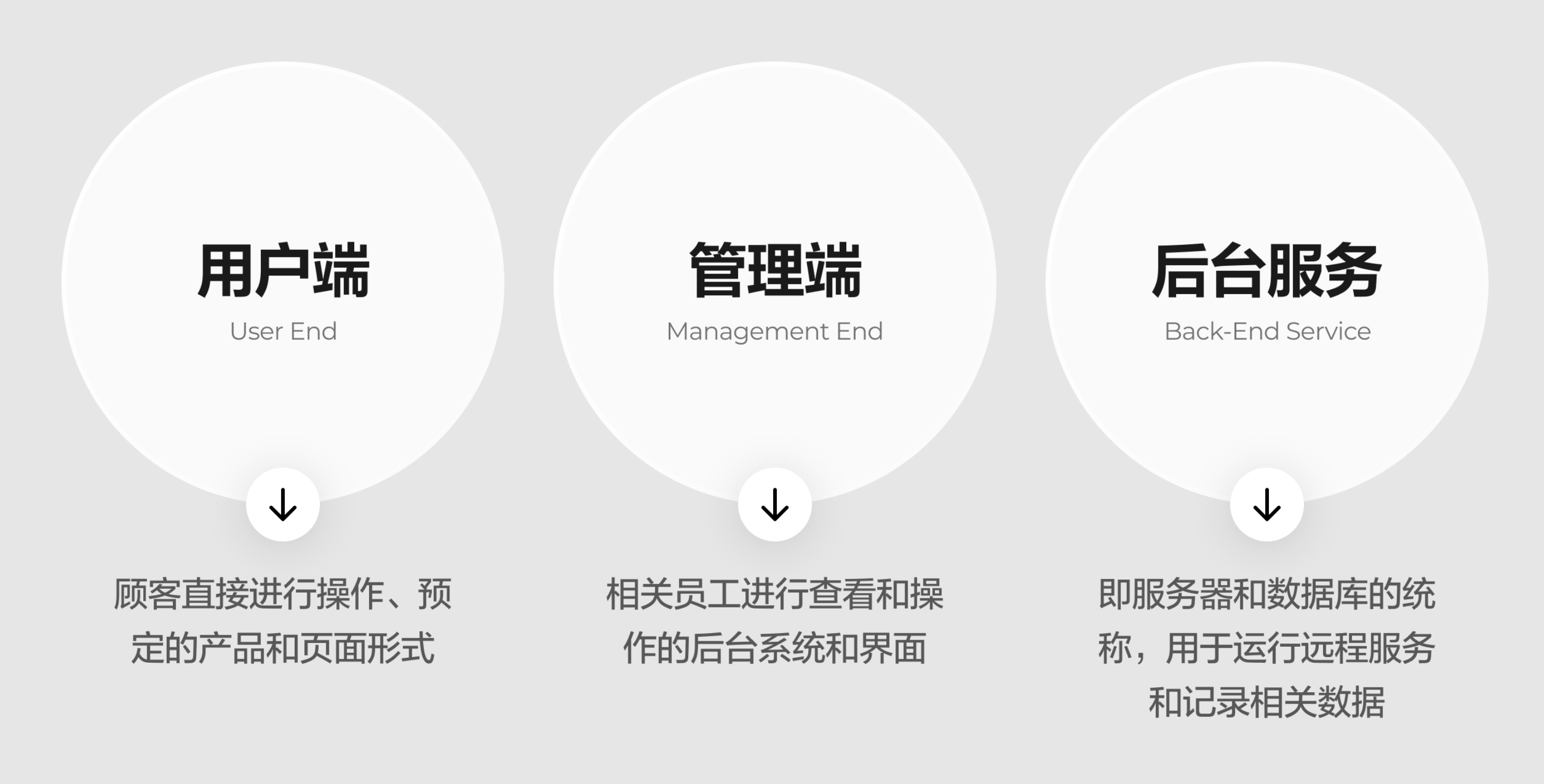 有了問題,下一步就是建立產(chǎn)品的框架,比如這個(gè)業(yè)務(wù)會(huì)涉及到多個(gè)端,產(chǎn)品就要先創(chuàng)建多個(gè)端的功能框架出來,包含的端可以簡化成下面三個(gè):