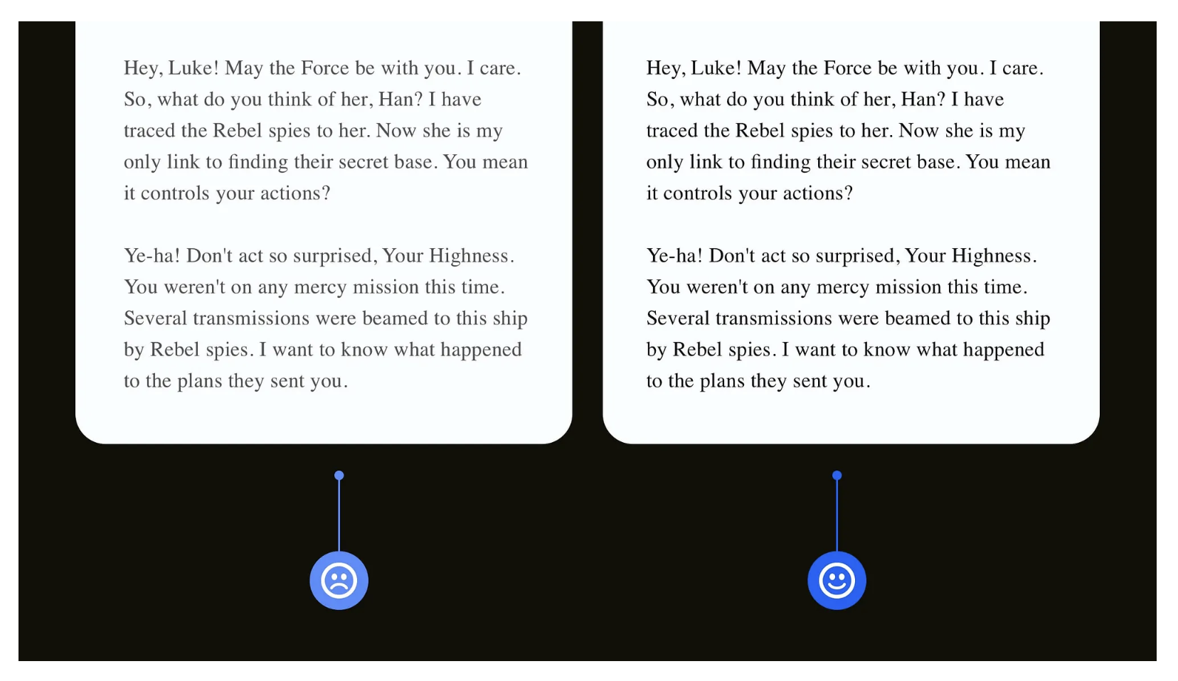深色模式雖受用戶喜愛,但純黑背景搭配純白文字會(huì)產(chǎn)生強(qiáng)烈對比,導(dǎo)致散光用戶出現(xiàn) “光暈”“閃爍” 等視覺不適。優(yōu)化方案是:將背景色調(diào)整為深灰色(而非純黑),文字顏色設(shè)置為 85%-90% 不透明度的白色,同時(shí)適當(dāng)增加行間距(1.5-1.8 倍),減少文字密集帶來的視覺壓力。此外,允許用戶手動(dòng)調(diào)節(jié)深色模式的對比度和亮度,滿足不同用戶的視覺需求。