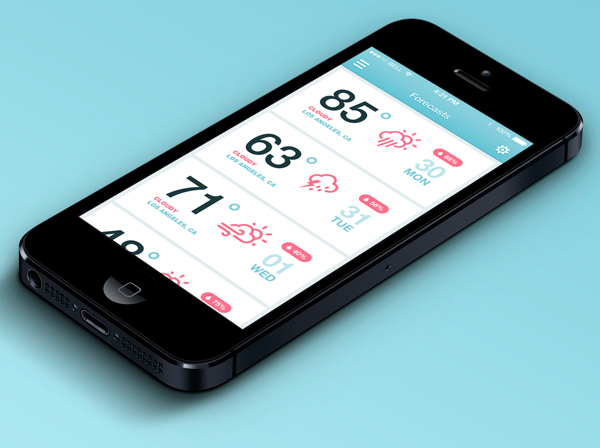 有太多的天氣應(yīng)用UI設(shè)計(jì)極為繁復(fù),并不適合只需天氣、溫度等信息的普通用戶,今天我們精選了一些天氣應(yīng)用UI設(shè)計(jì),讓你享受每一度的極簡(jiǎn)。