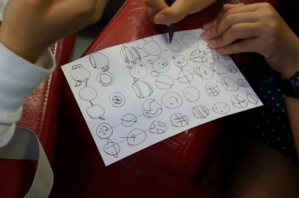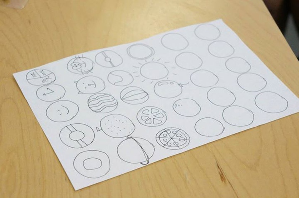 (這是在做頭腦風(fēng)暴前的小練習(xí),畫30個圓圈,然后盡可能地把每一個圓圈都賦予一個意義,變成不同的物件,這個聯(lián)系在很多關(guān)于頭腦風(fēng)暴的工作坊里都有,Photo by Tatsuhiro Ohtani,VIA同事)