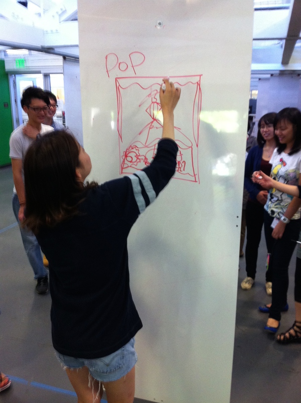 除了具體的步驟和視覺化思考,Design Thinking所倡導(dǎo)的社會化思考是一種設(shè)計態(tài)度,思維,和與人溝通的方法。所以貫穿在這五步里面,我們做了大量的Improv Game(即興游戲),去改變學(xué)生的思維方式,讓學(xué)生更懂得如何在團隊里與人合作(因為IDEO本身就是很注重團隊精神的)以下列舉幾個有意思的: