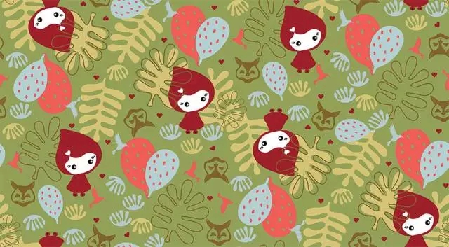 綠色與紅色、橙色與黃色等暖色的搭配時,重要的是要強調(diào)兩者之中的一個。比如,在上圖中的主色為綠色,點睛色就為紅色和黃色,其中紅色的顏色較深,突出強調(diào)圖案中的人物形象,而其他的色彩就退而次之,綠色的飽和度較低且偏黃,與黃色相得益彰地變?yōu)榱吮尘?,輔助突出了點睛色。