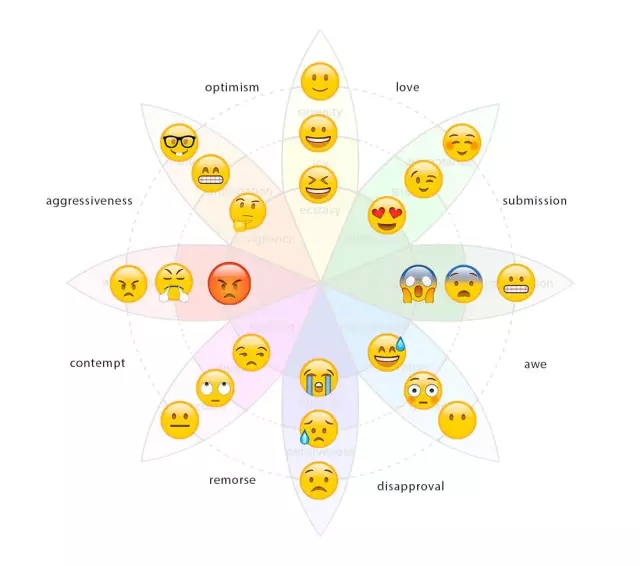 Huge 的用戶體驗(yàn)主管 Sherine Kazim 曾經(jīng)設(shè)計(jì)了一個(gè)基于emoji 表情符的情感輪,它將我們所熟知的色輪和情緒、emoji 表情結(jié)合到了一起,并加入了相應(yīng)的關(guān)聯(lián)。如果你想知道色彩是如何影響設(shè)計(jì),不妨從這個(gè)色輪開始著手了解。