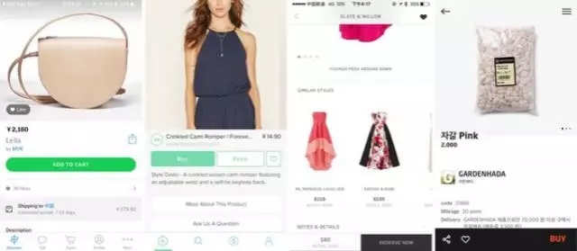 所有操作最終都希望被引導到我們想要去的地方,有的是商品購買、有的是發(fā)布信息。通常這張頁面上會有多個行動點,作為設計師我們希望行動點有主次之分,重點突出最核心的操作(比如購買)。有些需求方恨不得每一個行動點(購買、購物車、分享、收藏)都讓用戶第一時間看到,我相信不少設計師都應該遇到過類似問題。但如果站在簡潔的角度出發(fā),我們分析一下備選的幾款APP主次分離的概念就很容易講的清楚了。