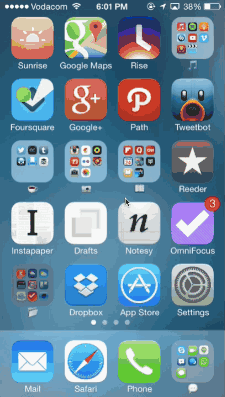 Apple iOS系統(tǒng)的UI設(shè)計(jì)中就很好的利用了這些有意義的過渡動效。下面的案例中,用戶點(diǎn)擊文件夾或者APP,圖標(biāo)當(dāng)大擴(kuò)展到整個屏幕,展現(xiàn)出細(xì)節(jié)和詳情。