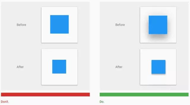 當用戶無法確定控件或者元素是否可以點擊,或者是否已經(jīng)被點擊了,他們就越是需要點擊之后的反饋給予心理安慰。一個元素的高度變化應該帶來相應的陰影變化: