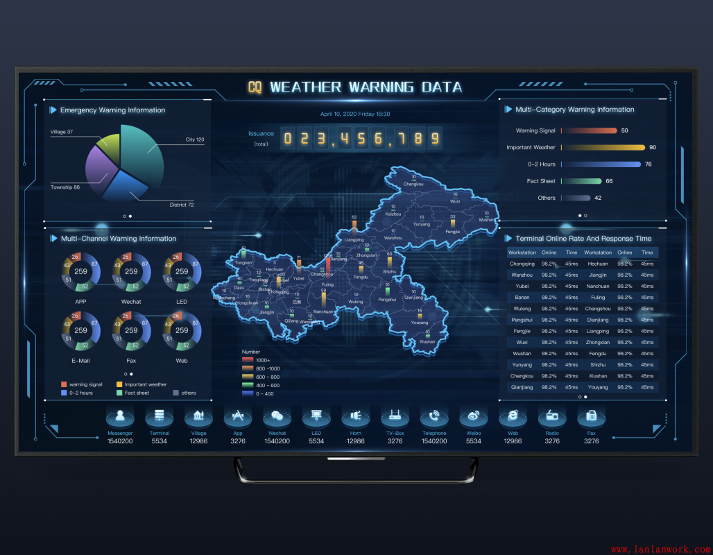 大屏可視化界面設(shè)計可謂是當(dāng)今行業(yè)、企業(yè)發(fā)展的見證,生動直觀地再現(xiàn)了行業(yè)、企業(yè)的全貌。不僅作為展示,方便了解、監(jiān)督;同時可以作為一個有效的管理平臺,帶來效益。大屏界面面向范圍廣,協(xié)同性好,易于被采用。下面幾個大屏的界面設(shè)計,沉穩(wěn)的背景上,加上亮色作為點綴和強(qiáng)調(diào)。既不失其風(fēng)格,又富有靈動性。