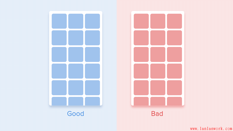 至于表格視圖,就會略微有些復(fù)雜。這種情況下,用戶往往是以對角線為焦點去看界面的,所以逐個出現(xiàn)的形式也比較糟糕。另外,逐個出現(xiàn)的動畫在時間上也會過長,而且把用戶的注意力引導(dǎo)成鋸齒狀,這是很不友好的。