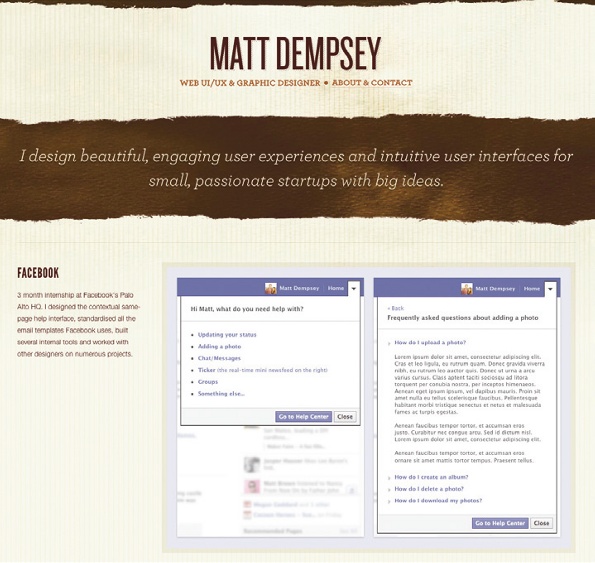 雖說是簡介,也要在有限的篇幅中盡量做到具有針對性。例如Ethical Studio 簡單而有效的將他們自己描述為“為非ZF組織、慈善團體創(chuàng)建網(wǎng)站”的工作室;又譬如設(shè)計師Matt Dempsey 是這樣介紹自己的:“我為充滿激情與想法的小創(chuàng)業(yè)團隊打造體驗精良、符合用戶直覺的漂亮界面。” 通過這樣的文案,你不僅可以立刻了解到他是做什么的,而且對他所承接業(yè)務(wù)的方向也有了清晰的認知。