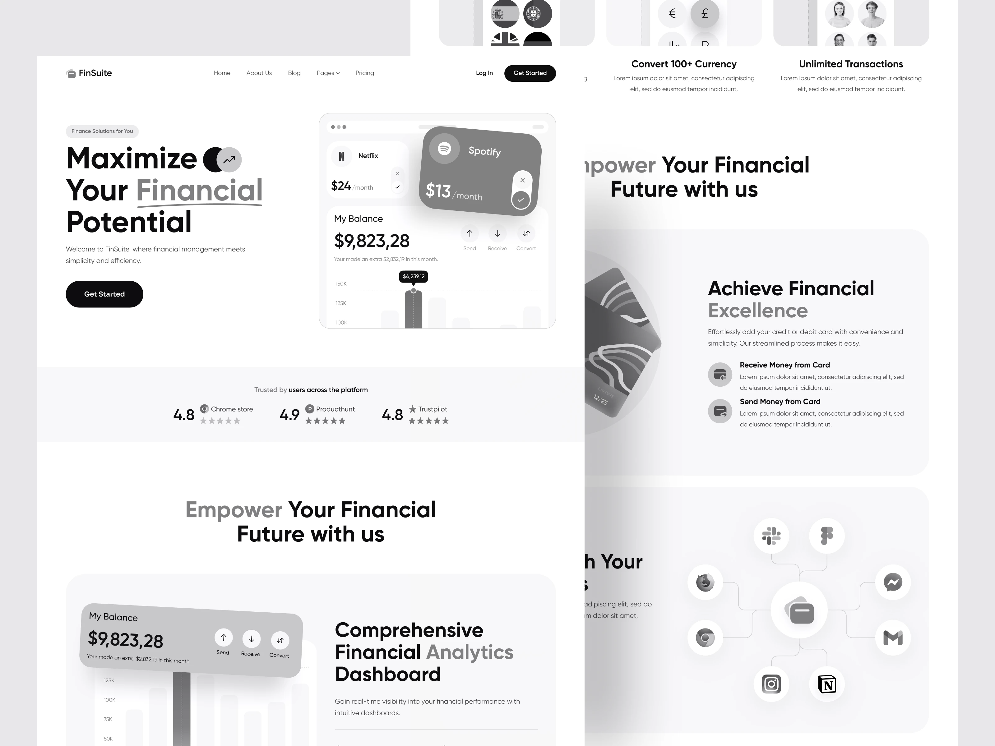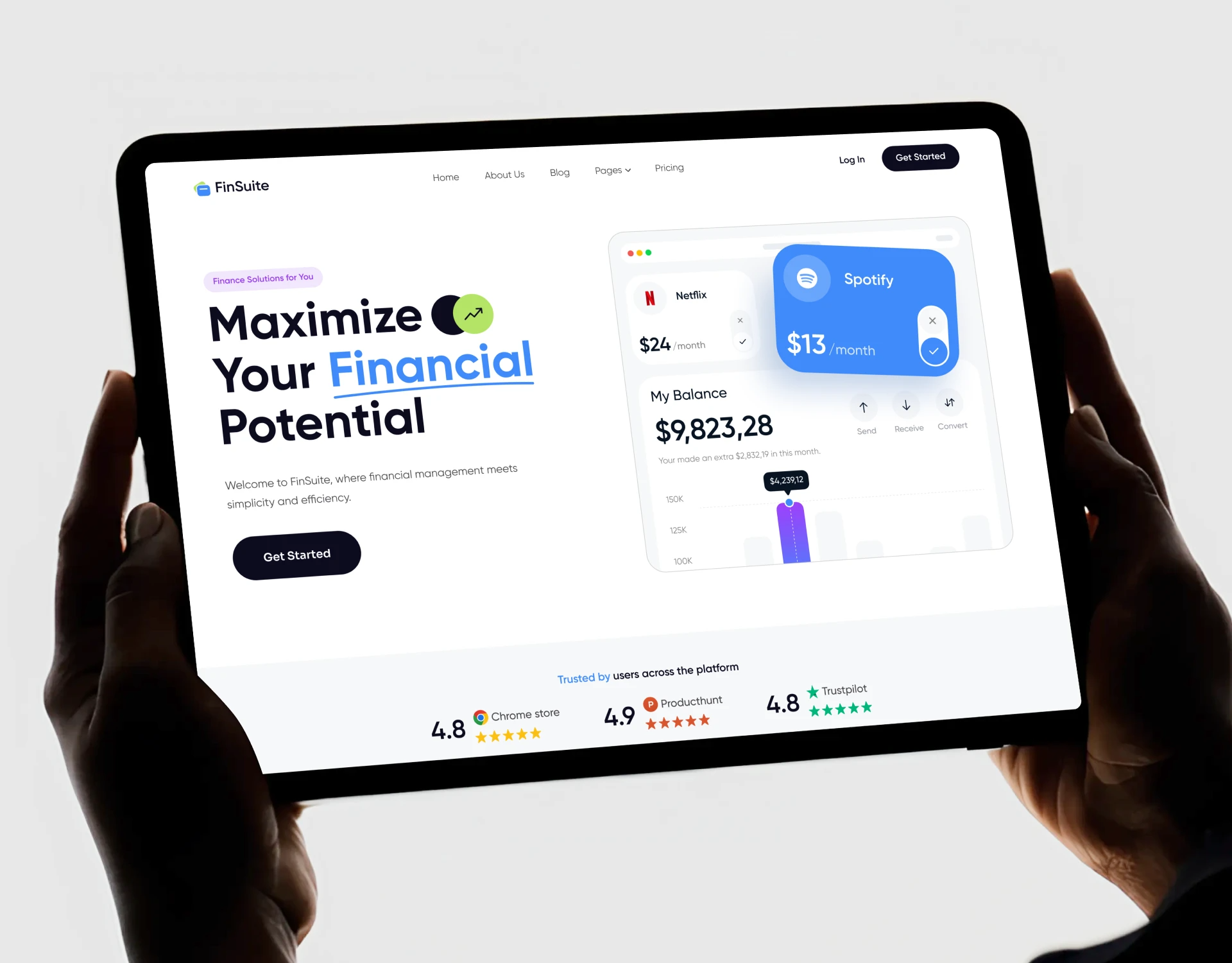 1.   Hero 區(qū):大標(biāo)題 + 產(chǎn)品截圖 → 直接傳達(dá)核心價(jià)值(Maximize your financial potential)。