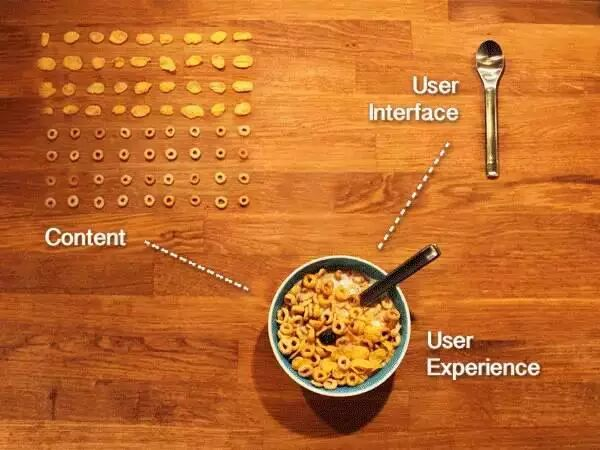圖十:UI是用來取內(nèi)容的工具,使用者使用UI吃完東西(內(nèi)容)的體驗是UX。