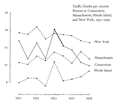 一個誠實的設計產(chǎn)品絕不能聲稱它并沒有的功能,絕不能吹噓。對于很多人來說,”設計”和”誠實”是兩個很難放在一起的詞,但是誠實對于設計來說太重要了,拿我們都相信的數(shù)據(jù)圖表來說,如果你覺得,一個數(shù)據(jù)或者一個圖表是最力的證據(jù),是無可爭辯的,那你就錯了,圖表也可以撒謊。信息設計和數(shù)據(jù)可視化之父 Edward Tufte 在他的書“The Visual Display of Quantitative Information” 中說,當電視里的產(chǎn)品或者圖表說謊的時候,這個謊言就會被擴大千萬倍。如果紐約時報的報道插入了說謊的圖表,那么這個謊言就被擴大了幾百萬倍。書中有這么一個圖,圖中表示施行限速前后交通死亡數(shù)量的變化。