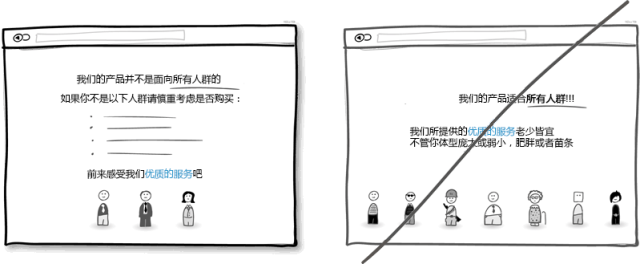 你是想把產(chǎn)品做成大眾化的呢還是有精確的適用人群?在產(chǎn)品定位上你需要更精確些。通過不斷了解目標客戶的需求及標準,你能把產(chǎn)品做得更好得到更多與客戶交流的機會,并且讓客戶覺得你很專業(yè),在這方面是獨家提供的優(yōu)質(zhì)服務。把產(chǎn)品定位得精確的風險就是可能縮小了目標潛在客戶的范圍,也使自身變得不那么全能。但這種做得更專業(yè)的精神卻反過來會贏得信任,權(quán)威。