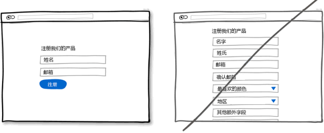 人生性就懶惰,在填寫表單時也是同樣的道理,沒人愿意填寫一大堆表單字段。表單中每個字段都會有失去用戶的風險。不是每個人打字都很快速的,并且在移動設備上進行輸入更是相當麻煩的事情。問下自己表單中是不是每個字段都必需,然后盡量減少表單中的字段。如果你確實需要一大堆信息讓用戶填寫,試著將它們分散在不同頁面,在表單提交后還可以繼續(xù)補充。過多字段很容易讓整個表單顯示臃腫,當然想簡潔也很容易,只放少數(shù)字段。