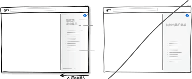 用戶進行操作過程中,界面上的元素會經(jīng)常出現(xiàn),隱藏,打開,關閉,放大縮小移位等。給這些元素增加些自然的動畫,淡入淡出效果不但美觀,也更符合實際,本來元素尺寸位置的變化就是一個需要時間的動畫過程。但要注意動畫時間不要設置過長,那樣會讓想盡快完成操作的用戶不耐煩。