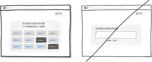 這一界面設計中的經(jīng)典準則是有心理學依據(jù)的,相比要讓某人回想想某樣東西,從一堆東西中認出某樣東西會更容易些。辨識出一樣東西只需要我們稍微回憶一下,通過一些線索就可以完成。而回想則需要我們?nèi)嫠阉髯约旱拇竽X。也許這也是為什么試卷上選擇題會比簡答題做得快的原因。所以試著在界面上展示一些用戶之前涉及到的信息讓他們進行選擇,而不是讓他們想半天然后自己填寫。