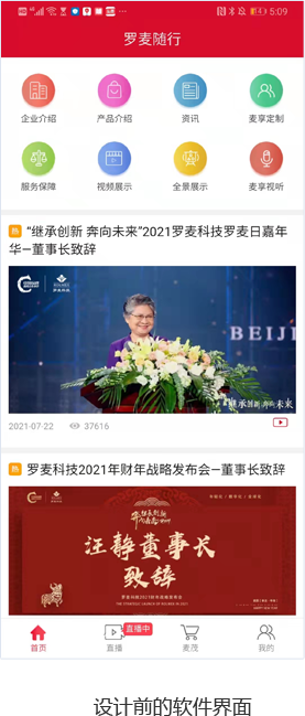 羅麥隨行app,一個(gè)與羅麥伙伴無縫鏈接的平臺(tái),這是一個(gè)讓羅麥伙伴足不出戶,也能隨時(shí)隨地了解羅麥?zhǔn)聵I(yè)的平臺(tái)。羅麥微生活、羅麥微視頻、羅麥隨身工具包、羅麥電子書、羅麥科技微聚焦等版塊統(tǒng)統(tǒng)搬回家。這個(gè)App已上線多年未更新,客戶希望設(shè)計(jì)公司自由發(fā)揮,在現(xiàn)有功能上優(yōu)化交互和視覺,完成首頁(yè)改版。